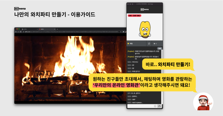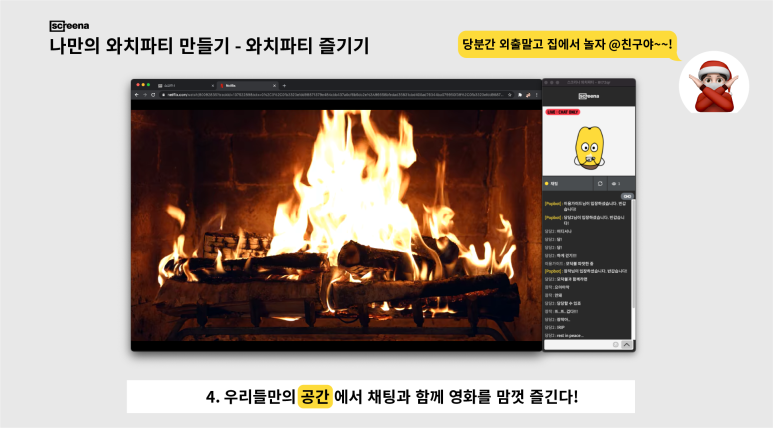▶스크린이나 워치파티는 넷플릭스를 보면서 사람들과 채팅을 할 수 있는 서비스입니다.