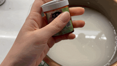동봉되어 있던 미니스푼으로 건져드렸어요. 너무 귀엽죠?