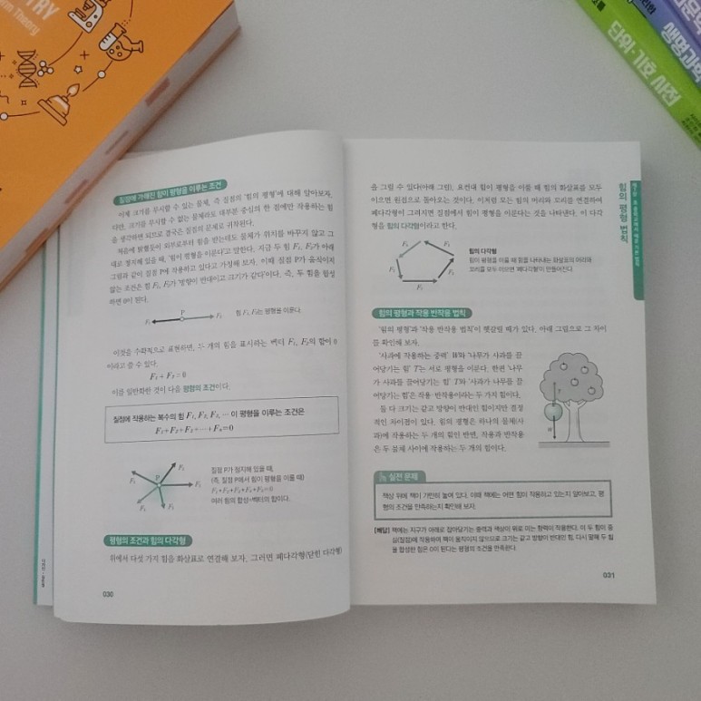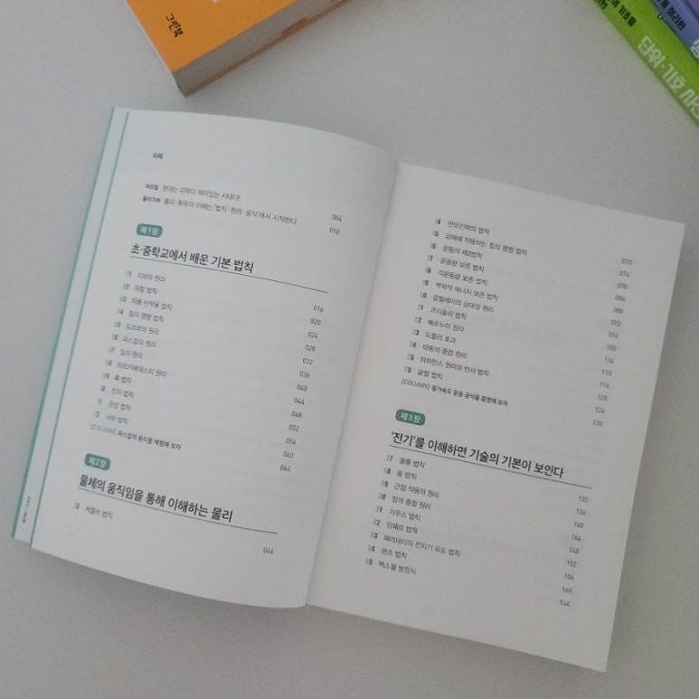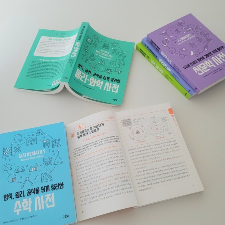 고등학교 과학시간에 배우는 물리와 화학의 법칙·원리·공식을 정리하여 한 권에 담고 각각의 개념이 실제로 적용되는 예문을 더해 주변에서 흔히 볼 수 있는 요소로 정리한 책입니다.과학은 초중고교 모두 같은 것을 배운다는 것을 아시나요? 초등학교 때 배운 것, 중등에게 배운 것, 고등에서 배웁니다.좀 더 깊게 심화해 나가는데 그런 의미에서 초등학교 고학년 때부터 재미있게 읽었던 책입니다.