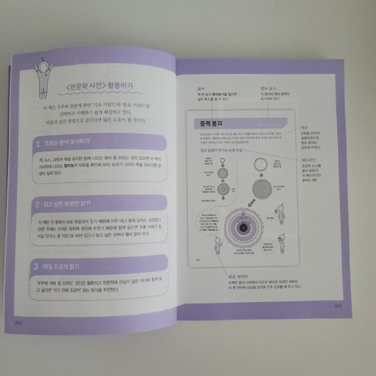 우주와 천문에 관한 ‘기초 키워드’와 ‘중요 키워드’를 간략하고 이해하기 쉽게 정리한 사전이다. 300여 개의 천문학 개념, 원리, 이론 등을 귀여운 일러스트와 쉬운 문장으로 풀어냈다. 우주에 대해 잘 모르는 어른들을 위한 교양서뿐만 아니라 천문학에 관심 있는 청소년들을 위한 학습서로서 천문학 세계를 깊이 이해할 수 있을 것이다
