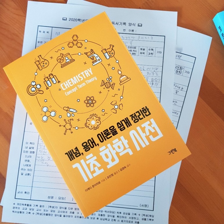 아이가 초등학교 5학년 때 서점에서 골라온 책이었는데 책에 낙서라고 하지 않는 아이가 평생 보관하겠다고 이름을 적은 책이 물리입니다.화학사전입니다.