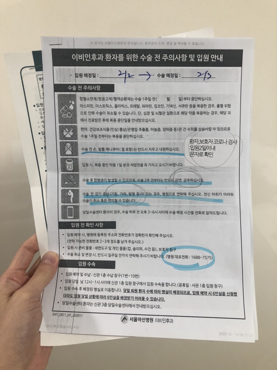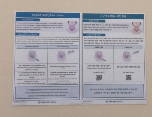 시간이 지나 수수일이 정해졌다.다시 갑상선 초음파 및 조직검사 후 수술방법에 따른 주치의 변경 등 순서대로 기록해본다.