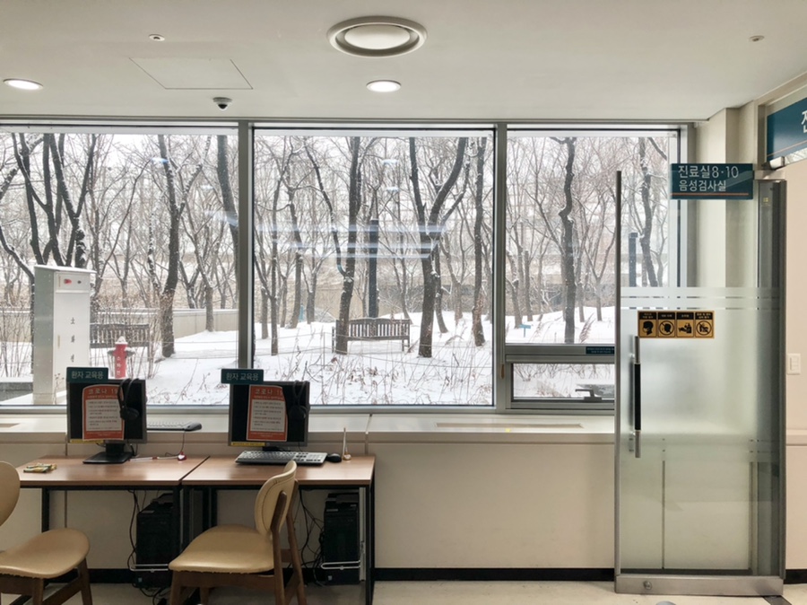 눈이 와서 병원은 너무 예뻤다.아픈 사람들로 가득한 병원이지만 아픈 분들도 예쁜 풍경으로 위로받은 걸 나만 사진을 찍는 게 아니었다.대기하고 있던 분들도 하나둘 창가로 와서 펑펑 내리는 눈 사진을 찍었다.