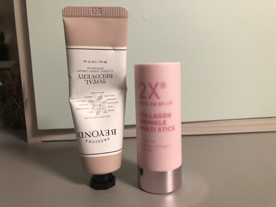 기초화장품과 늘 손이 따끔따끔 깨져 힘든 나와 엄마의 핸드크림도 잊지 않았다.주름화장품이긴 하지만 립스틱까지 발라도 되는 멀티스틱도 손에 틀림없는 이런 것들은 준비성 정말 철저하게