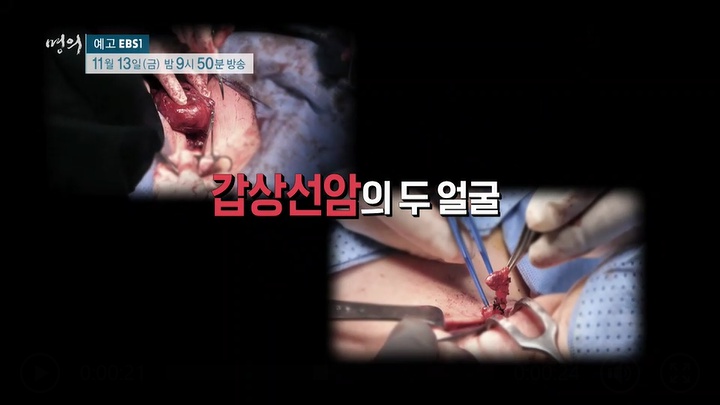 갑상선 암 진단을 받고 치료를 받은 환자는 갑상선 암을 절대로 ” 착한 암”라고는 말하지 않습니다.치료를 받고 일상으로 돌아가는 과정이 힘들었기 때문입니다.” 착한 암”이란 이름으로 숨겨진 갑상샘암의 진짜 얼굴은 과연 뭘까요?EBS명의의 선량한 암은 없어)갑상선 암의 두 얼굴 편에서 갑상선 암 환자의 대화를 통한 갑상선 암의 실체를 자세히 조사합니다.