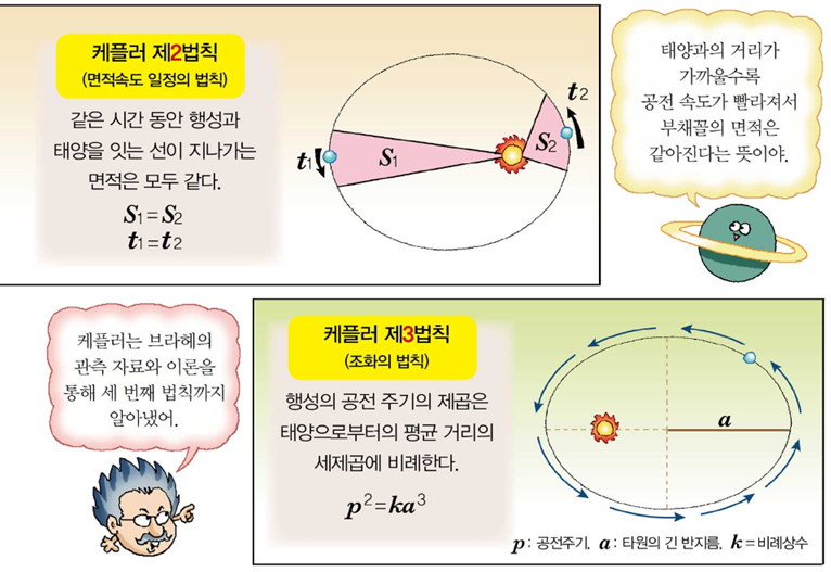 또한 공전의 속도가 태양에 가까워질수록 빨라진다는 케플러 제2법칙과 공전의 주기는 태양과의 거리에 비례한다는 케플러 제3법칙까지 발견했습니다.