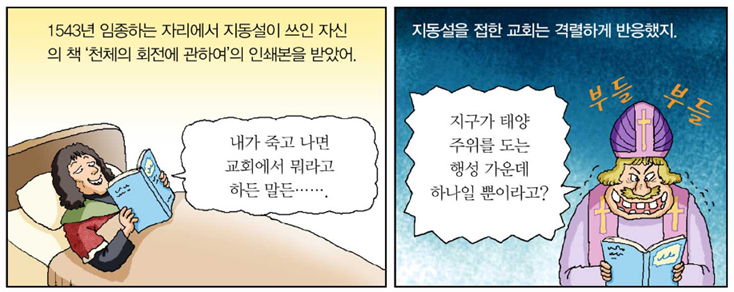 현재는 지구가 태양 주위를 도는 지동설을 모두 믿고 있지만 17세기까지는 지구가 중심이고 태양이 지구 주위를 공전한다는 이론인 천동설을 믿었습니다.