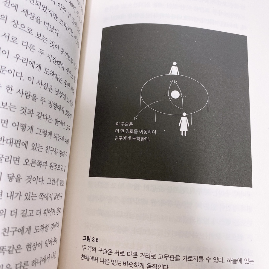 물리 법칙을 설명할 때는 농구코트나 공 등의 비유를 넣으며 설명한다.화려한 우주 사진 없이도 우리는 머릿속에서 간단한 우주 모델을 그릴 수 있다는 점이 이 책의 큰 장점이다.