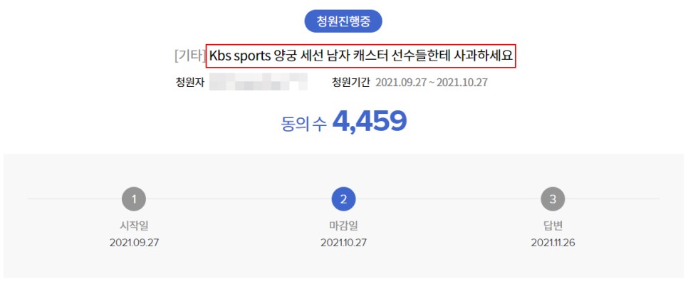 KBS 시청자 권익센터에는 ‘KBS sports 양궁 세계선수권 남자 캐스터 선수들에게 사과하세요’ 라는 시청자들의 청원이 올라오기도 했는데요~