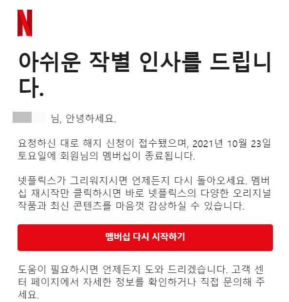 그리고 해당 메일을 통해 넷플릭스 계정 삭제 요청을 했습니다.