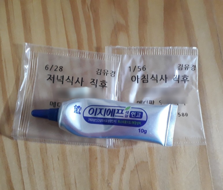 아침과 밤에 먹는 약이 다르고 상처 부위에 바르는 연고가 있습니다.