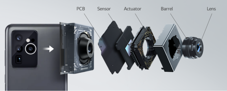 카메라 모듈은 피사체에서 반사된 빛을 액추에이터를 이용하여 AF(AutoFocus:렌즈의 위치 조정으로 초점 맞추기) & OIS(Optical Image Stabilization: 손떨림 보정) 기능으로 보정 후 렌즈로 한 점에 모아 센서에서 전기 신호로 변환하여 영상화하는 제품입니다.