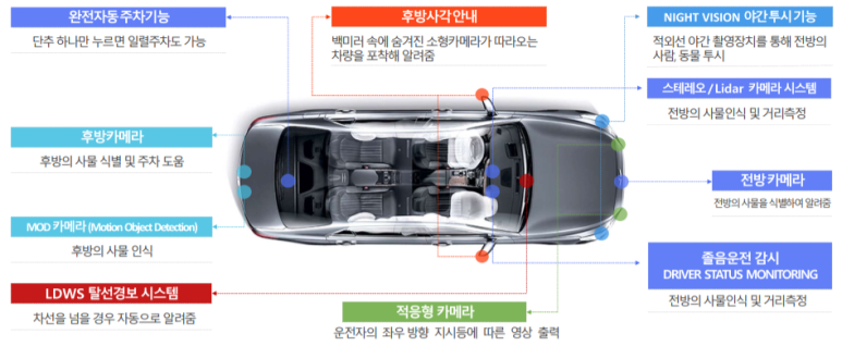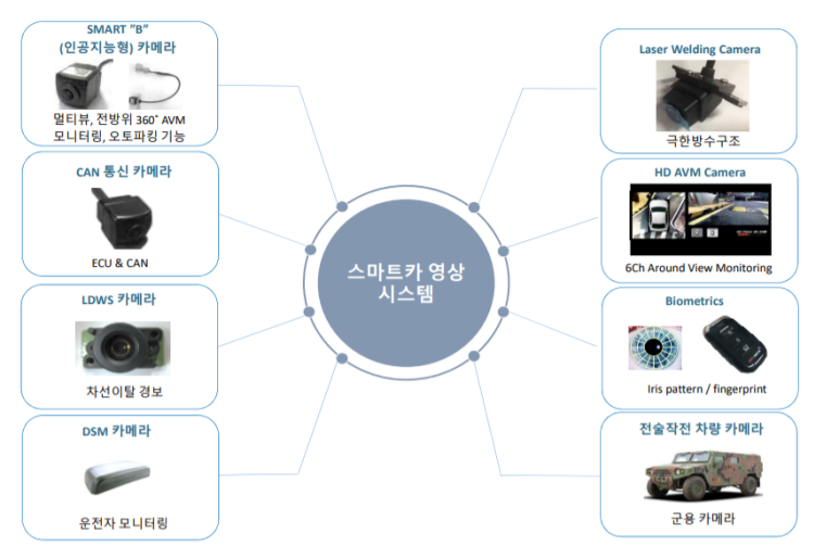 전장 카메라는 800여종의 카메라 모듈을 개발해 왔으며 현대·기아차의 모든 프리미엄 차량에 적용할 수 있을 정도로 수준이 높습니다.