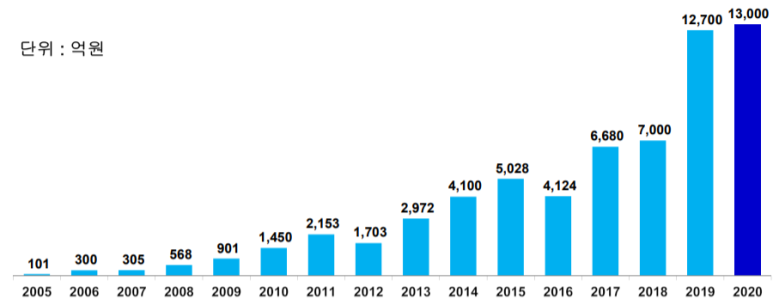 - 카메라 모듈 시장 규모가 2014년 201억달러에서 2020년 510억달러 정도로 커졌습니다.