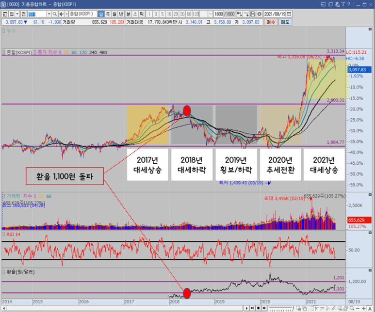 코스피 차트 흐름 분석 (2017~2021년)
