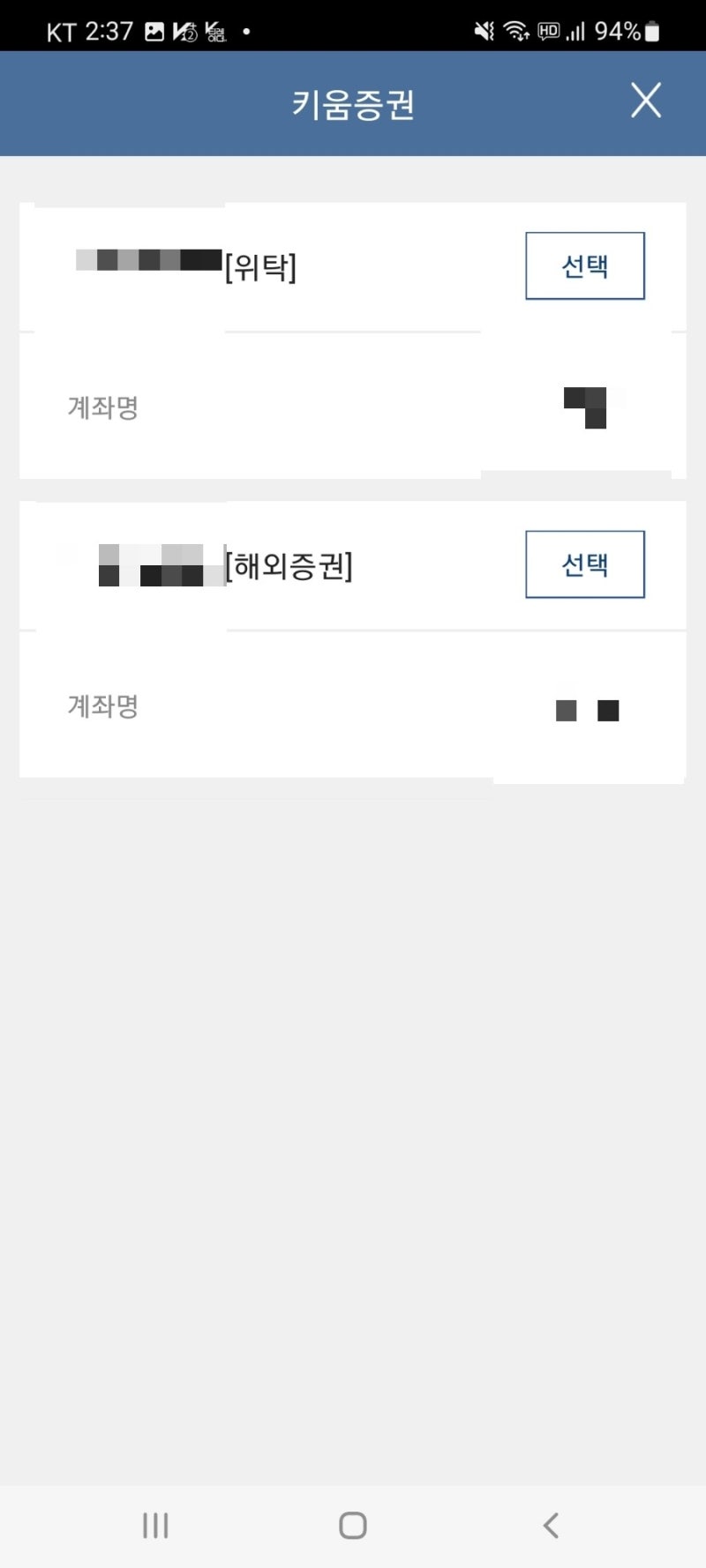 미성년자 자녀의 증여세 없이 증여하기 때문에 아기가 태어난 지 1년 정도 후에 해외 증권 수수료가 가장 저렴하다는 키움증권(국민은행에서) 계좌를 개설했습니다.https://m.blog.naver.com/cutepari/222532766477계속 미루더니 마침내 증여세 신고. 미리 만들어 놓은 키움 증권 계좌에 2000만원을 입금한 뒤 진행했습니다. h…m.blog.naver.comhttps://m.blog.naver.com/cutepari/222532688769국민 은행으로 키움 증권 계좌 만들기(미성년자)미성년자 증여세 없이 2000만원 증여하기 위해서 신한 s-ligt.m.blog.naver.com이왕이면 국내 주식, 해외 주식 계좌 2개이라는 것이 좋은 것 같아서 2번 모두 개설하고 별 문제 없이 거래하는 오랜만에 계좌 확인하려고 들면 공인 인증서로 로그인 못 했습니다. 다른 기관 인증서의 등록에 들어가고 재등록한다하려고 하니