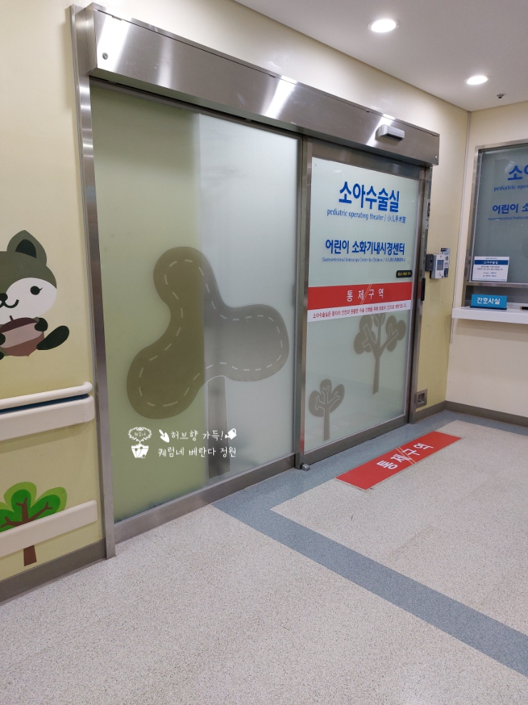 수술을 위한 입원 수속은 오늘 한 게 아니라 수술 전날인 어제 했어요듣고 보니 아이가 너무 어려서, 혹시 위험에 대비해서 중환자실 자리를 예약하려고 미리 입원할 필요가 있었거든요.(뭐, 그렇잖아도 기본이 전날 입원이긴 했던 것 같은데)