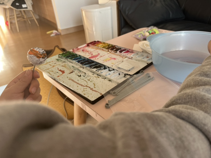 집에 있는 물감도 섞어서 발랐어요!