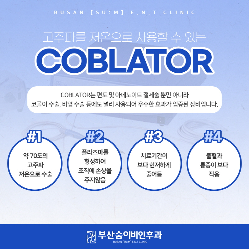 저희 병원에서는 부산 급성 편도염에 도움이 되는 코브레이터를 활용한 수술을 권장합니다.