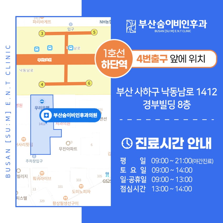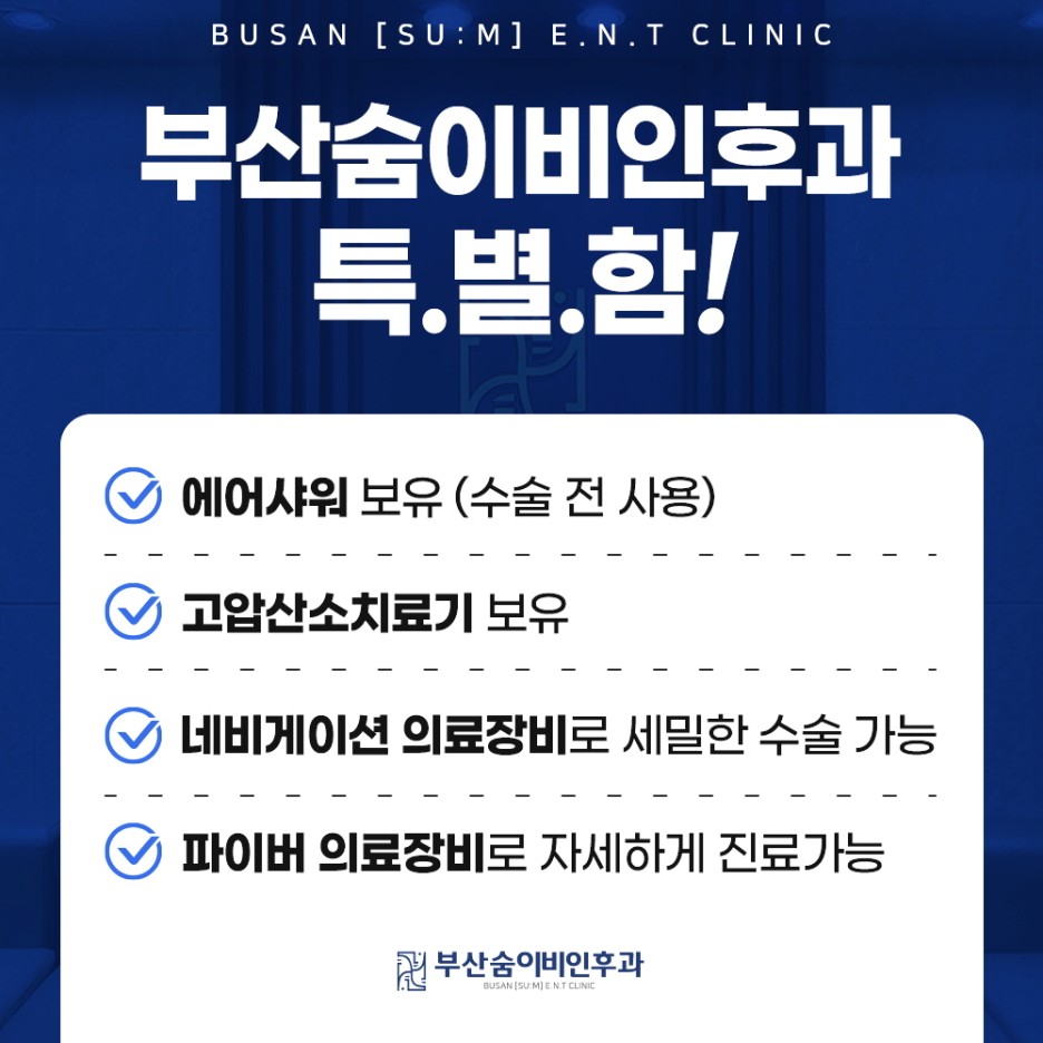 부산숨은이비인후과에서는 신뢰할 수 있는 이비인후과 전문 의료진분들이 진료와 상담을 진행하며 이후 수술 여부를 확인하고 있다는 점을 참고해 보시기 바랍니다.