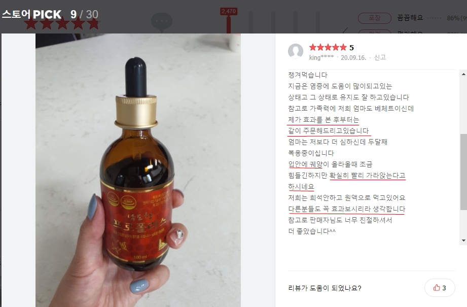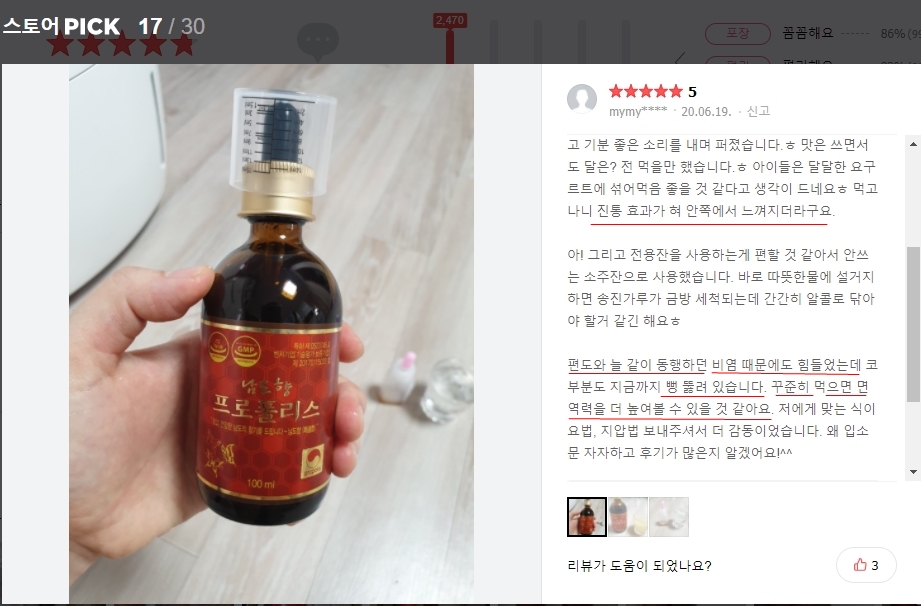 (네이버스마트스토어 남도향 프로폴리스 리뷰)