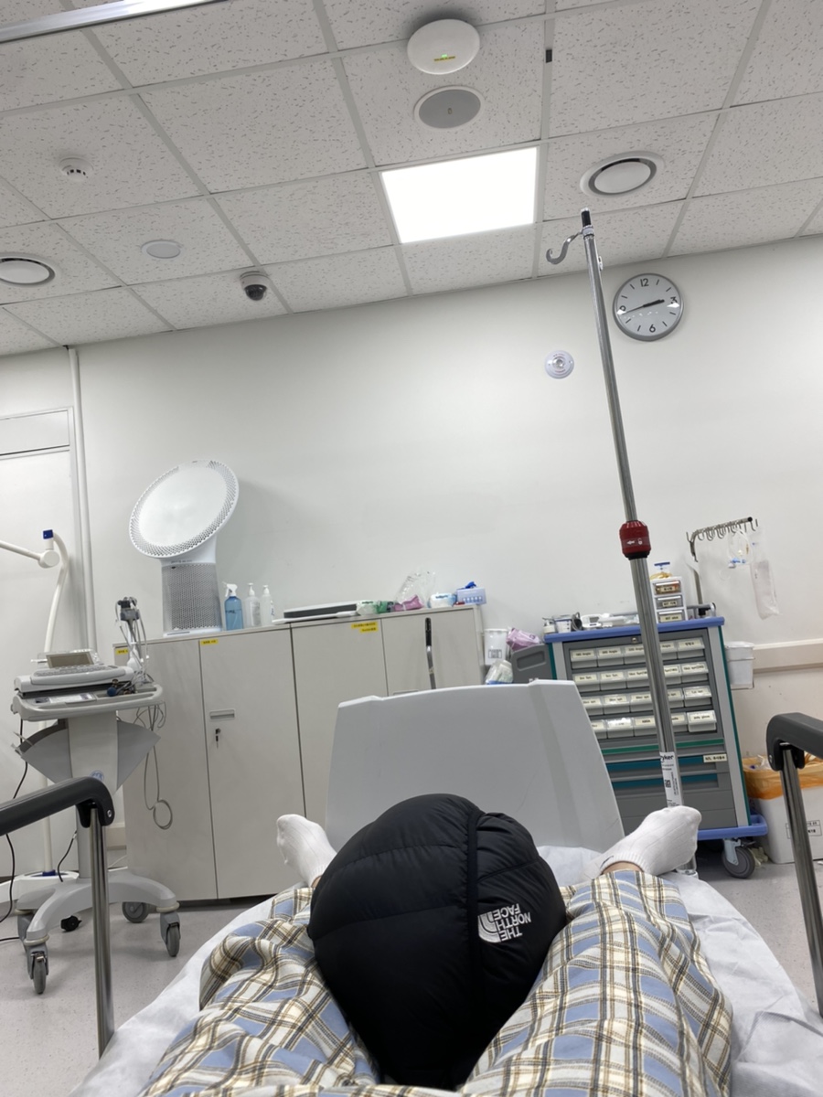 의사가 목을 보니 목이 심각하게 부어있다며 위험한 상황이라고 해서 시티를 찍어보고 좋지 않으면 바로 다른 병원으로 이송해 수술해야 한다고 했고, 나는 그때부터 안절부절못하는 것처럼 불안해지기 시작했다.