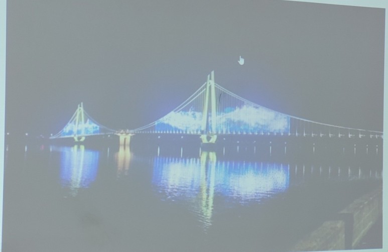 화려한 조명이 감동을 준다.잡는다.논산을 자랑하는 현수교 동양 최대의 길이.600m 야간의 조명은 보는 이로 하여금 마음을 사로잡는다.