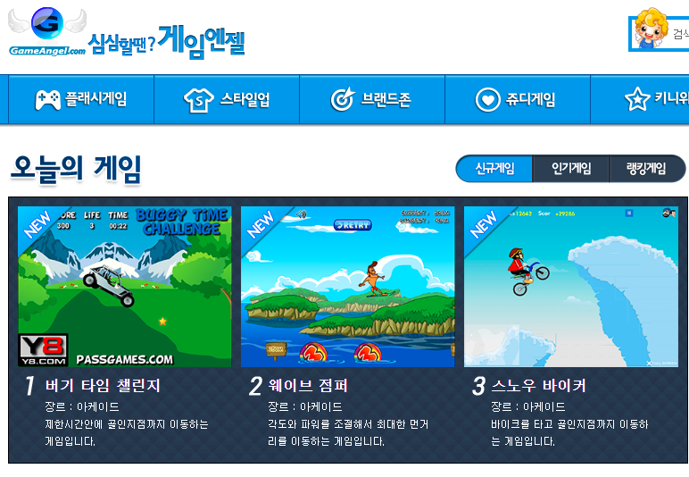 심심할 때 할 수 있는 게임 하면… 플래시 게임도 빼놓을 수 없을 것 같아요.시대에 뒤떨어진다고…요즘 플래시 게임도 잘 안 하시는 분들이 많은데. 그래도 옛날 생각을 하면서 기억을 떠올리며 하면 시간 때우는데 정말 즐겁게 할 수 있어요. 그중 대표적인 사이트인 게임엔젤이라는 사이트에 대해 소개하겠습니다.