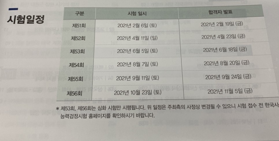 한국사 자격증 시험 일정 올해부터는 시험이 1년에 6회로 바뀌었습니다.2019년에는 4회, 2020년에는 5회, 2021년에는 6회로 점차 증가하고 있습니다.