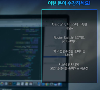 기초자격증뿐만 아니라 고급기술자격증인 CCNP 취득도 준비할 수 있도록 교육이 진행되고 네트워크 관련 업무를 위해 자격증을 취득한다면 기초보다는 고급자격증인 CCNP 취득을 하는 것을 권장합니다.