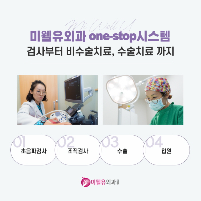 안녕하세요. 10년 이상 경력을 가진 외과 전문의 2명이 진료하는 미웰유 신중동외과입니다.
