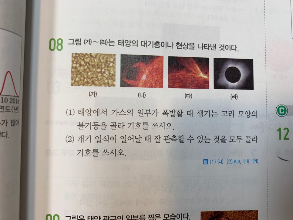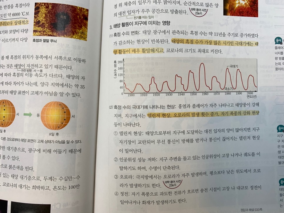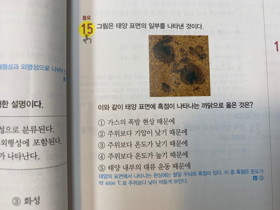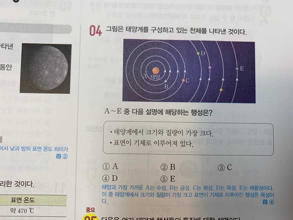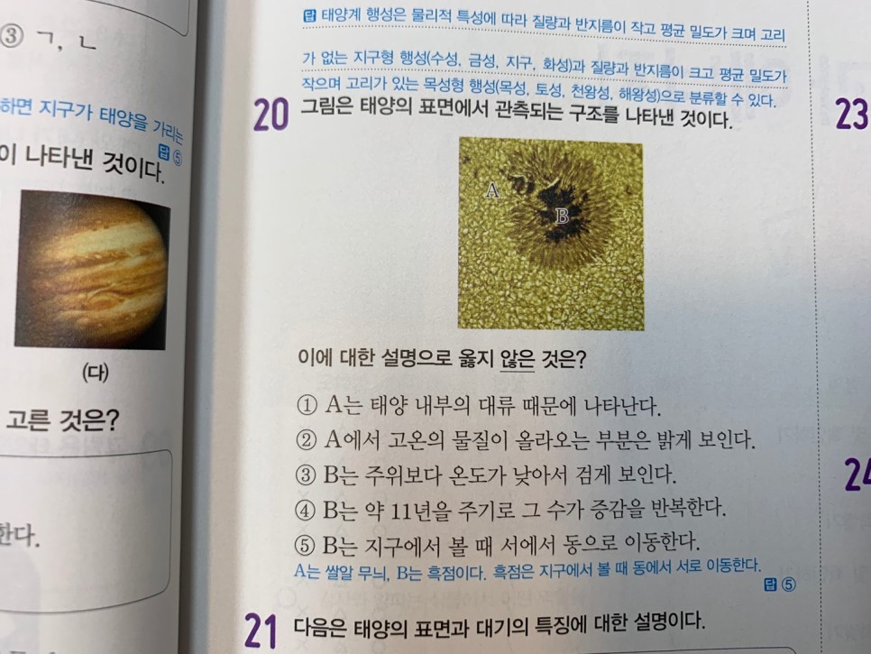 오늘은 태양계를 이루는 행성(내행성, 외행성)과 태양의 활동(채층, 홍염, 코로나, 플레어)을 보고 표면의 흑점, 쌀알무늬까지 살펴봤습니다.그림과 관련시켜 이미지화하는 것이 이번 단원에서는 도움이 될 것입니다.