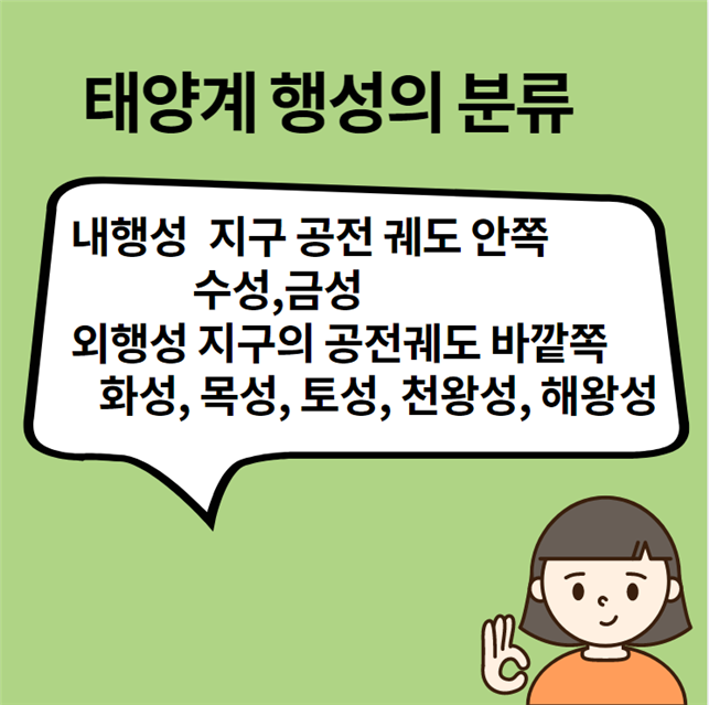 수성, 금성, 지구, 화성, 목성, 토성, 천왕성, 해왕성에서 지구를 중심으로 안쪽에 공전궤도가 있으면 내행성이라고 하며 수성, 금성이 있을 것입니다.지구보다 바깥쪽을 공전하면 바깥행성이래요.외행성에는 화성, 목성, 토성, 천왕성 해왕성 등이 있습니다.