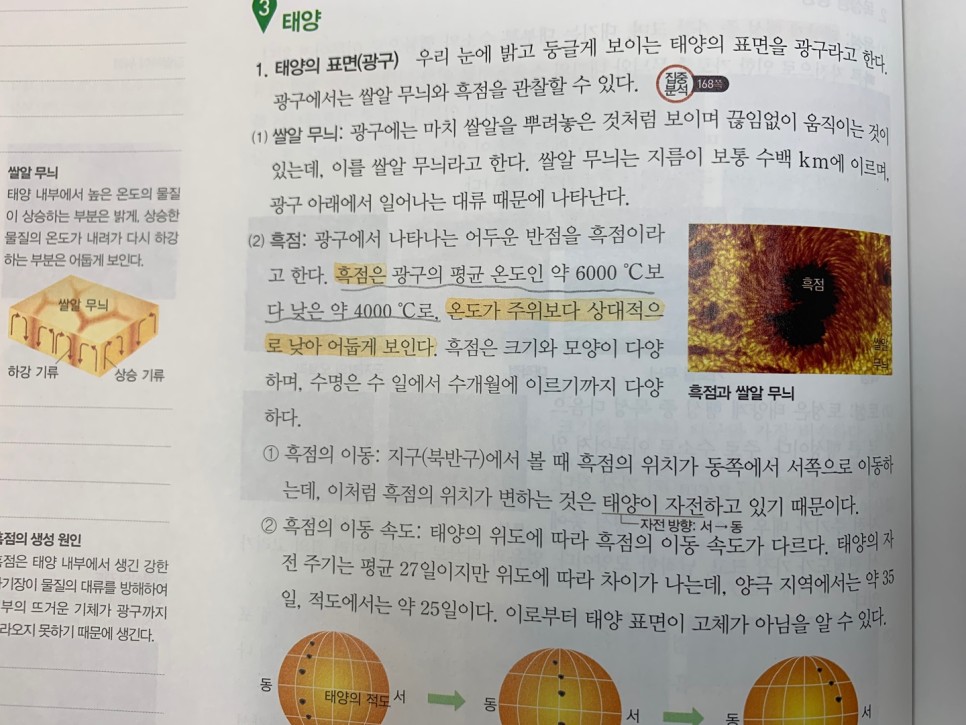 태양계 구성 중2과학흑점,쌀알무늬