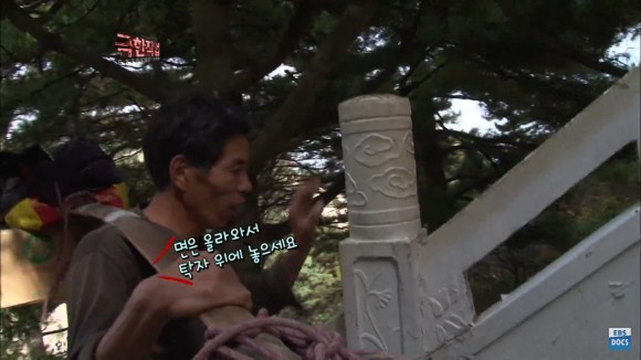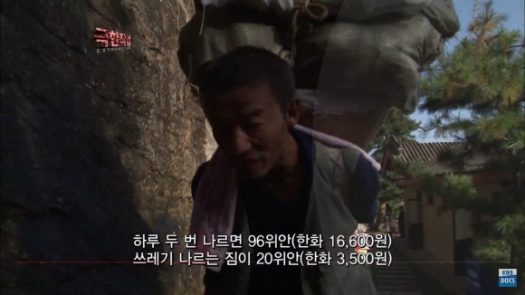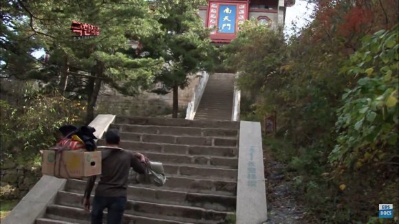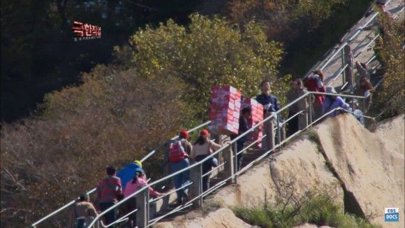 출처 – YouTube-ebs 극한직업 케이블카로 짐을 내리면 저 가파른 오르막인 계단을 오르게 됩니다.보기만 해도 가슴이 뜨끔하네요!!
