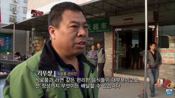출처 – 유튜브-ebs 극한직업식료품관리인 리우창 씨입니다.식료품이나 라면 등 다양한 필요한 물품을 산 정상(호텔)에 배달하는 업무를 짐칸을 통해 배달한다고 하더군요.
