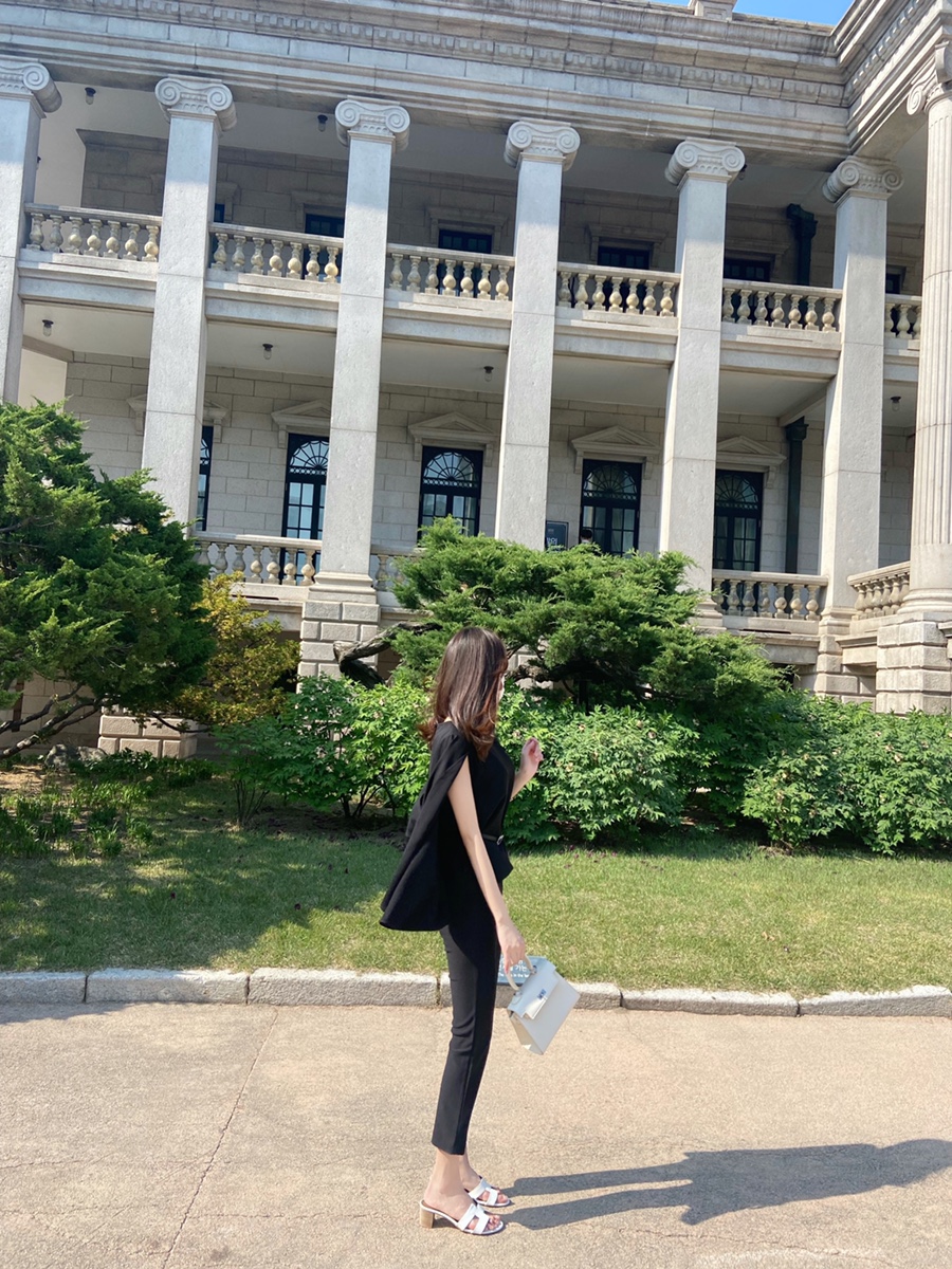 #데일리룩 #여름블라우스 #케이프 #민소매블라우스 #나시블라우스 #케이프블라우스 #오늘코디 #스판슬랙스 #버클벨트 #큐빅벨트 #판초 #정장블라우스 #여자여름코디 #올블랙코디 #블랙블라우스 #베이지슬랙스 #상견례 #오피스룩 #아나운서코디 #여름코디추천 #otd #수입의류 #고퀄리티여성패션 #블로그마켓