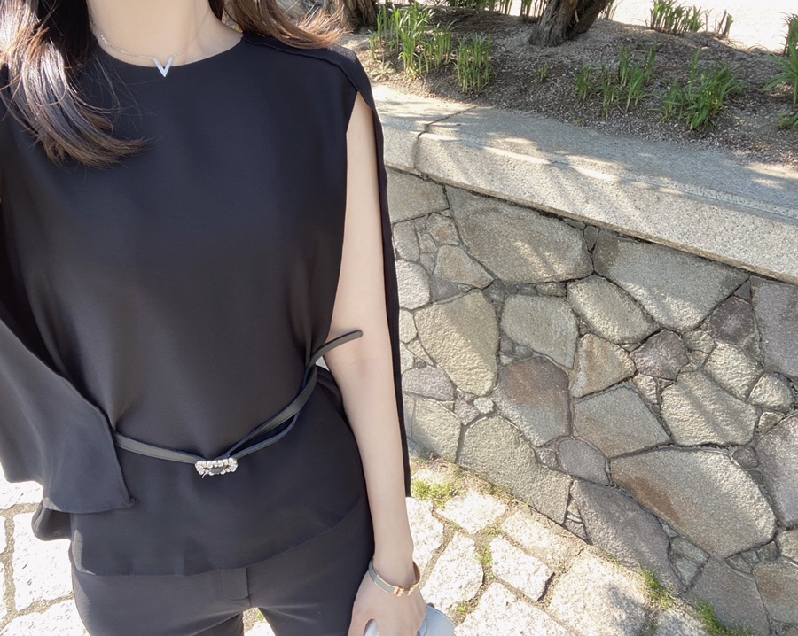화이트 블랙 상견례 아나운서 정장블라우스 버클 벨트 큐빅벨트 여름 하늘하늘 판초 민소매 나시 케이프블라우스