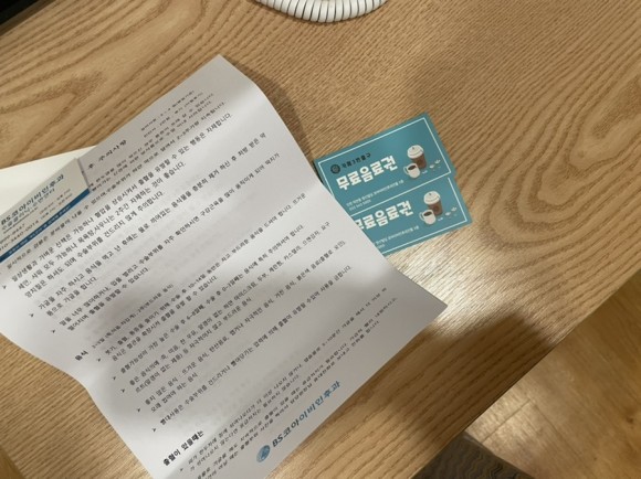입원환자에게 같은 층 카페 무료 음료권 2장 증정