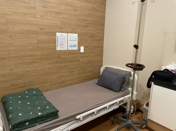 08:10 독방구경의 특징:보호자1명이 함께 있어 충분한 공간(저는 혼자 입원했습니다) 간이침대가 아닌 슈퍼싱글침대여서 환자보다 편할 것 같다