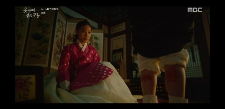 화빈에게 화를 많이 냈어.. 정말 때릴뻔 했지만, 서상궁의 만류로 욱정이가 보낸 나인이니 아껴달라고..