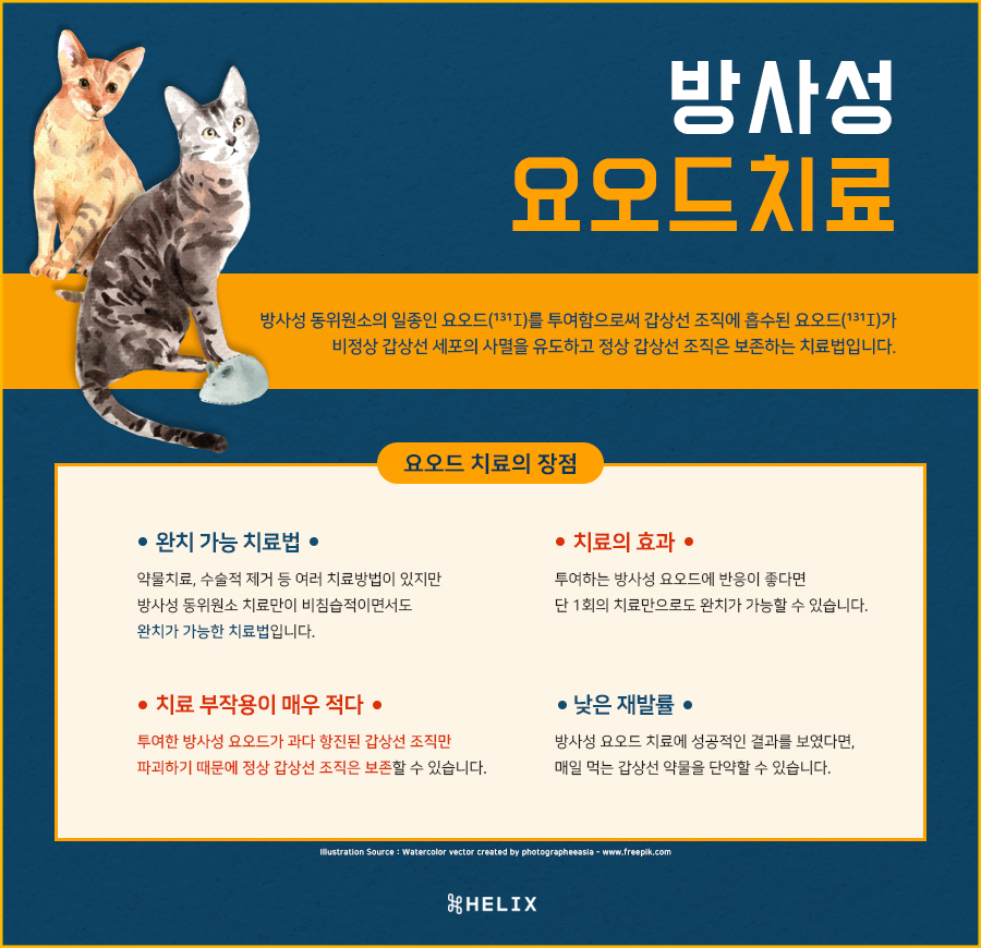 2차 동물병원 헬릭스 동물메디컬센터입니다.오늘은 갑상선 기능 항진증, 즉 갑상선 기능 항진증에 대해 알려드리는데 환자 케이스를 통해 질병 소개와 갑상선 기능 항진증 중 하나인 방사성 요오드 치료에 대해서도 함께 알려드리겠습니다.