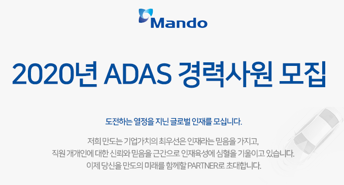 출처 : www.saramin.co.k 코로나19로 구조조정을 진행하고 있음에도 미래 기술 개발을 위한 자율주행 숙련자를 계속 모집하고 있으며 앞으로도 이 분야는 확실히 만도뿐만 아니라 한라그룹 자체가 성장동력으로 가져갈 것이다.