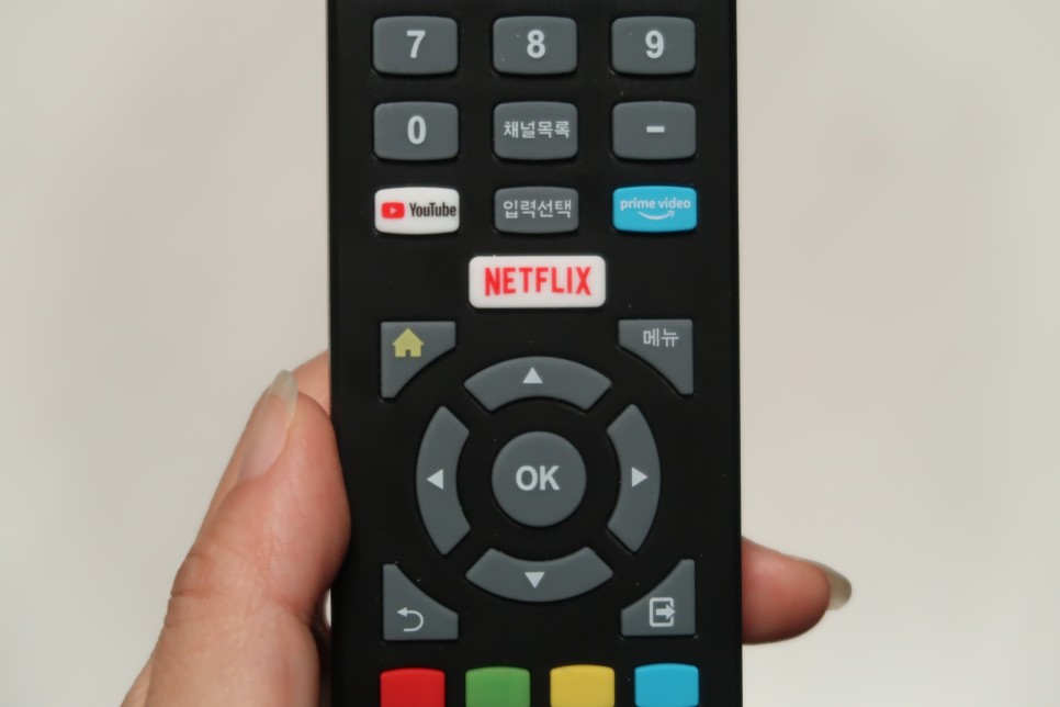 리모컨 가운데에는 넷플릭스와 유튜브 버튼이 있어 외부 접속 필요 없이 바로 접속이 가능하다.