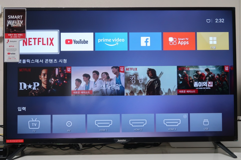 주연의 스마트 넷플릭스 TV, 유튜브와 스마트 미러링까지 지원되고 있네.
