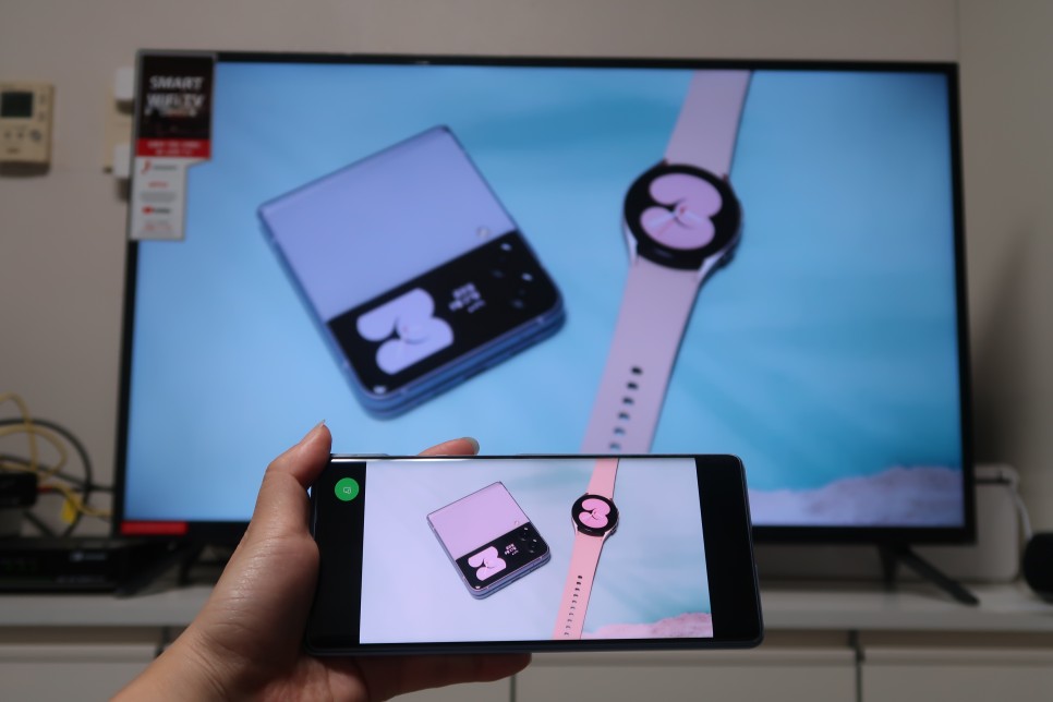 이렇게 스마트폰 갤러리에 저장된 사진을 함께 대화면으로 공유할 수 있는 장점이 있습니다.