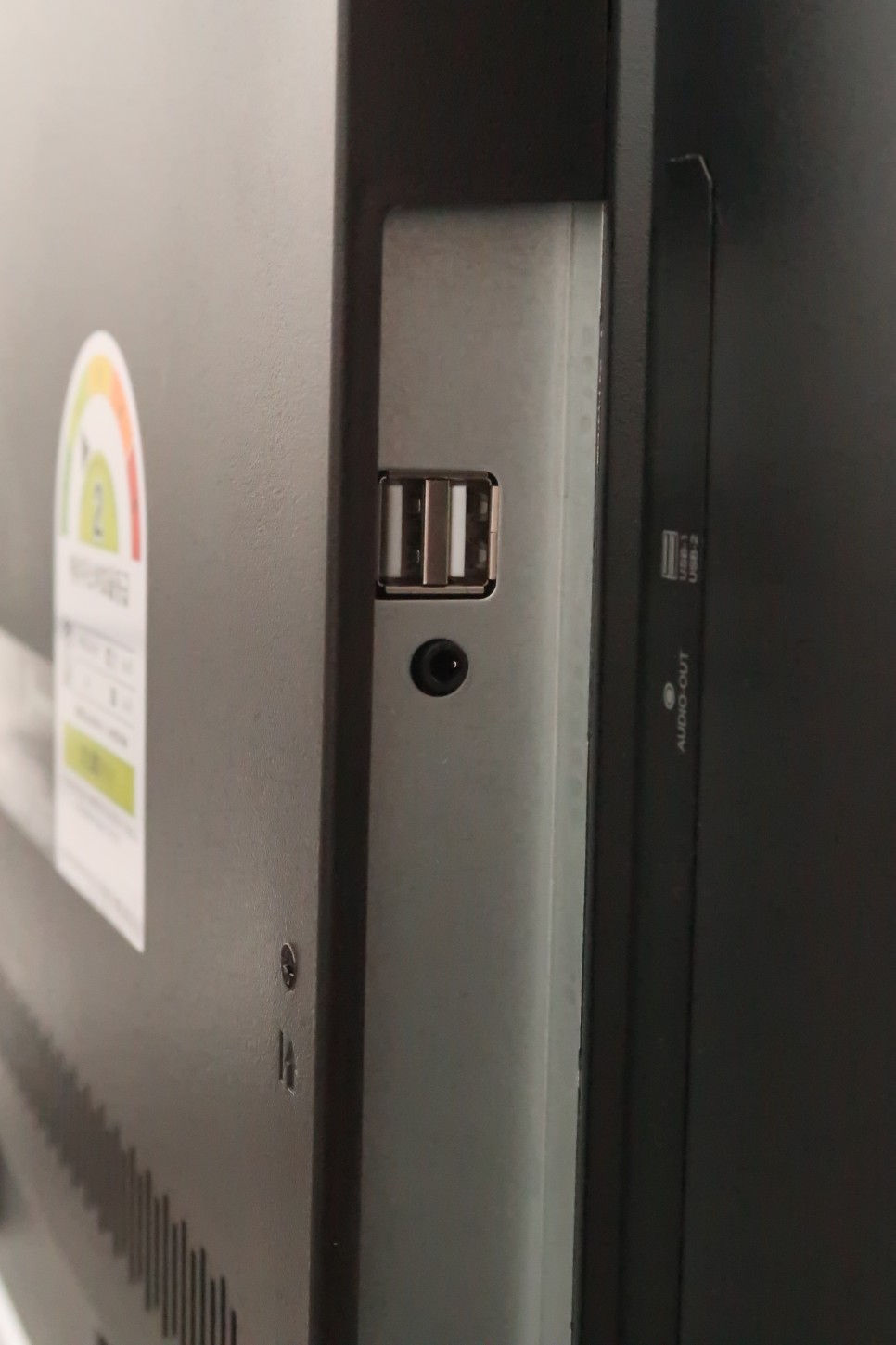 측면에는 USB 전원을 꽂을 수 있는 포트가 2개, 오디오 출력 단자가 1개 있습니다.