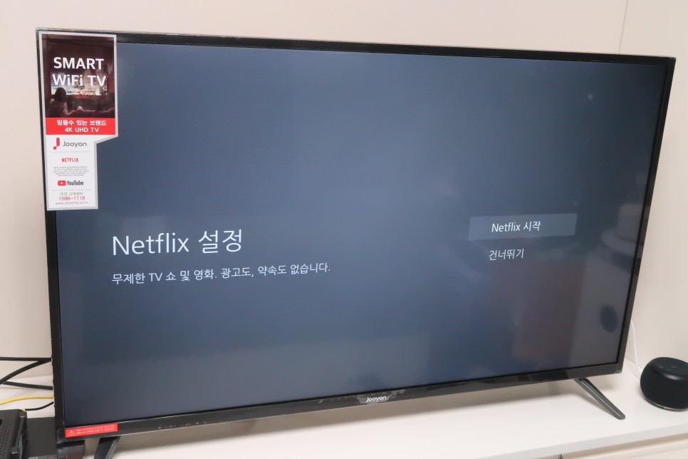 네트워크 설정이 끝난 후에는 넷플릭스 설정이 가능합니다. 주연 스마트 TV는 유튜브와 넷플릭스의 4K 동영상 콘텐츠를 감상할 수 있는 스마트 TV입니다.