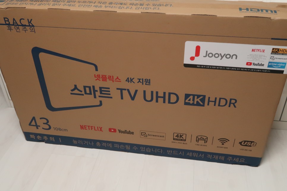제가 선택한 모델은 넷플릭스와 유튜브 4K를 지원하는 43인치 스마트 UHD TV입니다.