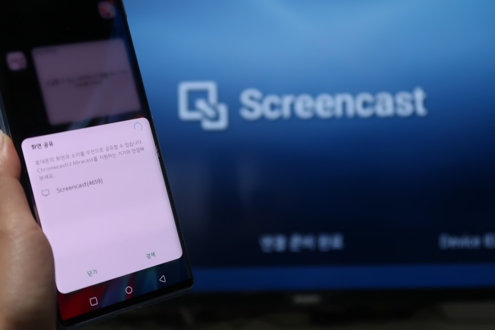 스마트폰(iPhone 제외)에서 화면 공유 또는 스크린 미러링 등을 선택하면 주변에 있는 기기를 자동으로 검색해 줍니다.